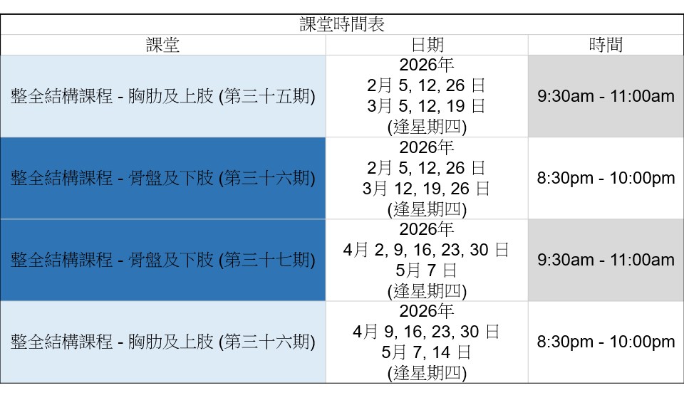 上肢及胸肋課程(初階):